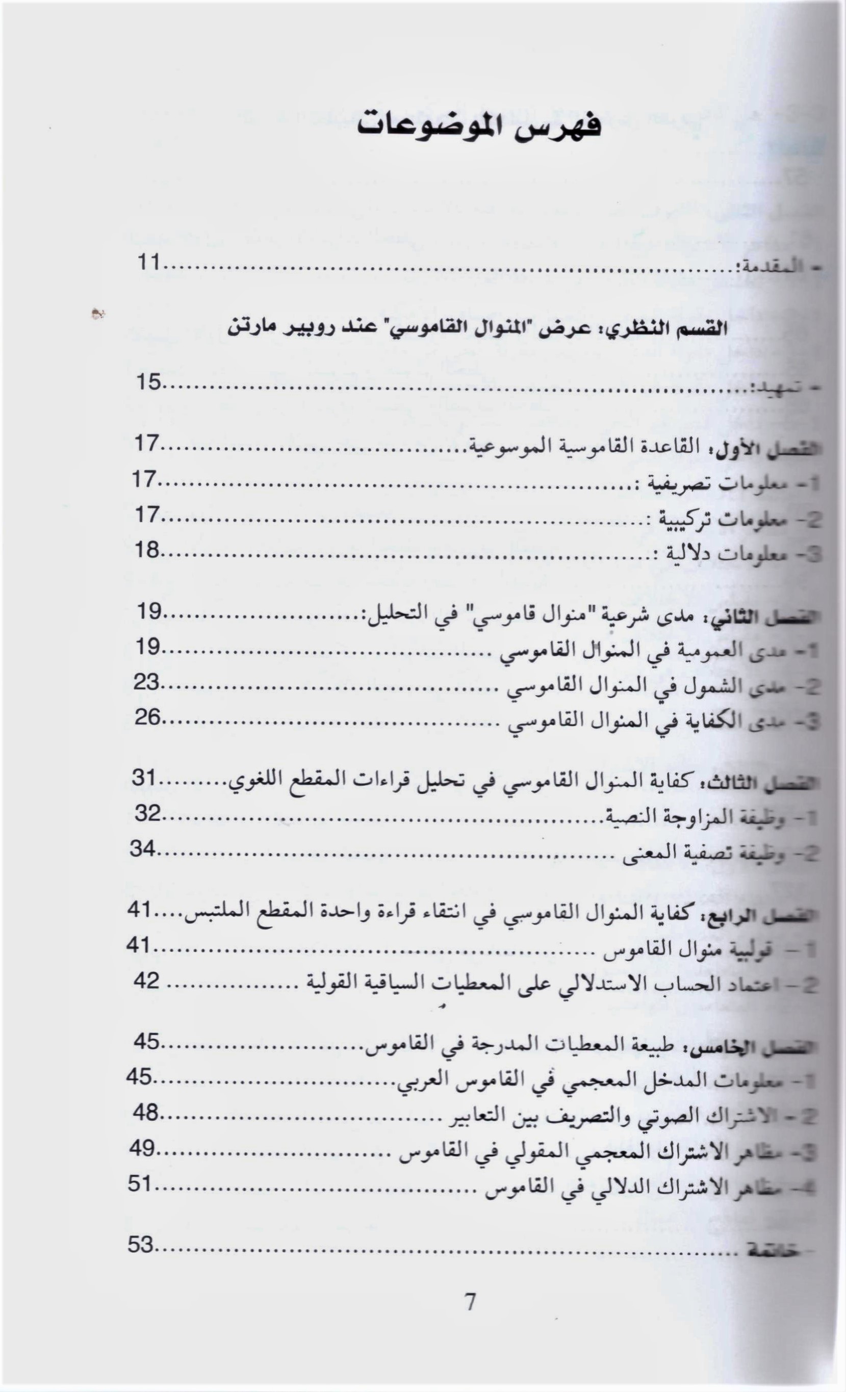 يحاول هذا الكتاب اذاءة بعض الجوانب الايجابية المثمرة في منوال منهجي أصبح استعماله شائعا في عدة مجالات ألا وهو المنوال القاموسي. وحتى يكون هذا المنوال دقيقا فضلنا الاقتصار على كتاب "علم الدلالة والآلة-منوال القاموس" للغوي الفرنسي روبير مارتن. ويكفينا لاثبات ذلك أن نتصفح حوله شبكة الويب حتى نكتشف أنه مازال محور نشاط عدة فرق بحثية في فرنسا، ومحور تفكير عدة ندوات لسانية في جامعاتها...