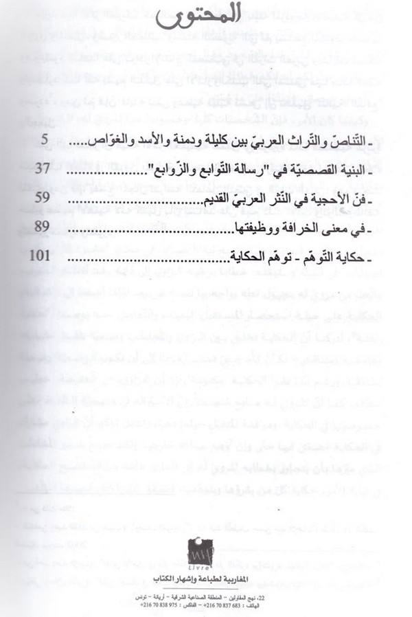لما انكب الباحث في التراث الأدبي على بعض من مصادره نظرا وتقليبا وإعادة نظر تكشفت له زوايا طريفة وجوانب خفية لم يكن ليتفطن لها لولا هذا العود المستمر لتلك النصوص وذاك الاستلهام الذكي لما يستقر في الفكر الغربي من مناهج ومقاربات ما فتئت تسائل منجزها النقدي وتعيد النظر في ما استقر من في التراث النثري العربي وأحكام. في هذا السياق وبتلك الروح تسعى هذه ال في التراث النثري العربي الى استعادة بعض من وجوه تراثنا بعيون معاصرة آملة أن تساهم في الكشف عن جوانب مشرقة منه وأوجها طريفة تؤكد قدرته على مغالبة الزمن ومواكبة العصور ومصارعة الغفلة والنسيان.
