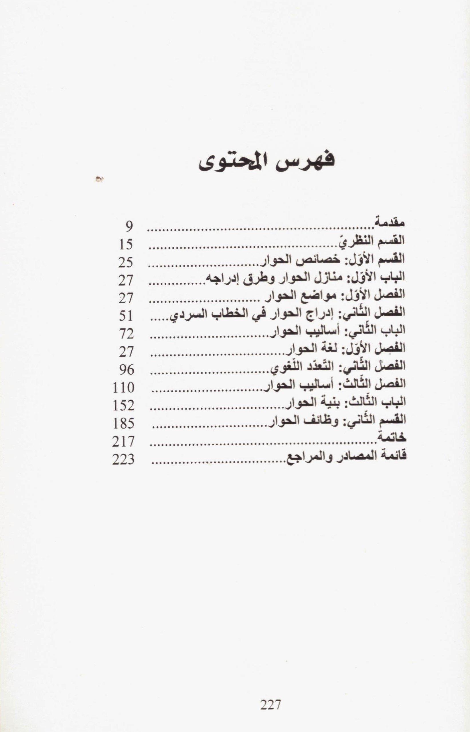 سعينا في هذا العمل الى دراسة الحوار الذي بدا لنا ذا بنية مخصوصة وأساليب متنوعة، ووظائف مختلفة ينهض بها، بالاضافة الى توفره على قدر كبير من التعدد اللغوي، معتمدين في ذلك على ما توفره لنا أحدث الدراسات المهتمة بهذا الأسلوب من آليات نظر وطرائق مقاربة، ومنها الدراسات التداولية وأبحاث التفاعل القولي، ومستندين في ذلك الى أبحاث أعلام الحوار تنظيرا وتطبيقا. ومتبعين منهجا احصائيا تطبيقيا قوامه النظر في أغلب المقاطع الحوارية في النص الروائي ودراسة أبنيتها وأساليبها ووظائفها ودلالاتها، وبيان أهم العلاقات التي يمكن أن يكونها هذا الأسلوب مع سائر الأساليب القصصية الأخرى، وفي علاقاته هو ذاته داخل المتن الروائي.