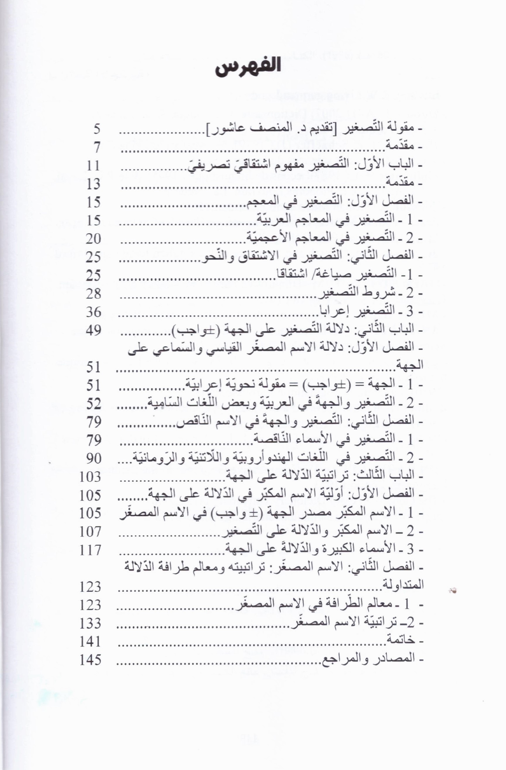 الاسم المصغّر ضرب من الوحدات النحوية الاشتقاقية التصريفية التركيبية التي نعتبرها مجالا خصبا لتدبر مقولة الجهة، بما أنه اسم لا يعمل، فلا يجري مجرى الأسماء المشتقة من صفات وغير صفات، وان كانت صلته بأصله ثابتة. ان المتكلم يحتاج اسم التصغير، بما هو بنية مختصرة ينخزل فيها الزوج الموصوف والصفة، في كثير من المواضع، ولا يحتاج الاسم الكبير أو الاسم المكبر لأن السياق أو المقام يوجب ذلك، بما هو حاجة تعبيرية تواصلية ابلاغية في صلة بالذات المتكلمة وغيرها، بما هي غير أو بما هي هي. ومع ذلك سنرى من خلال أمثلة ممثلة، أن المتكلم سيعمد الى الاسم الكبير للتعبير عن معاني التصغير، خاصة في العربية الفصحى الدارجة اليوم، في الأدب والفكر والفلسفة والعلم ووسائل الاعلام، وصفا وتحليلا وتعليلا